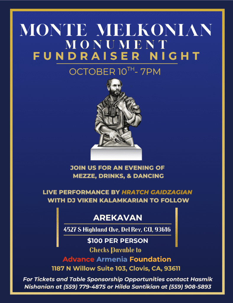 Monte Melkonian Monument Fundraiser Night – October 10th at 7pm